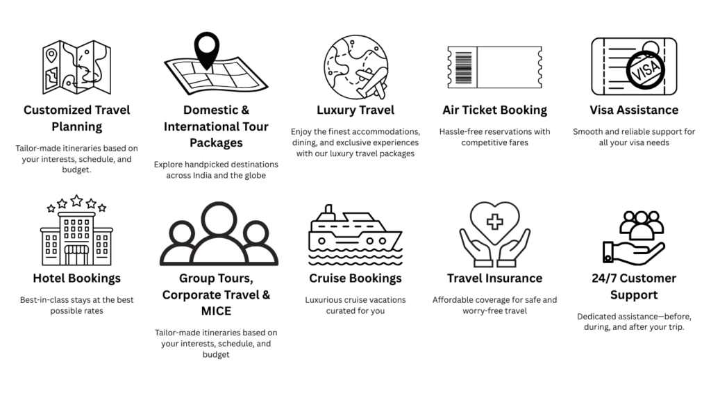 We offer a comprehensive range of services to meet every traveller’s needs: